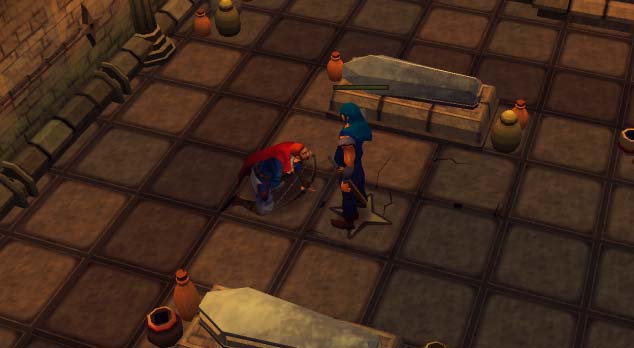 1. Ga naar de begraafplaats in Lumbridge en praat met Xenia. Zij zal vertellen dat een aantal sekteleden van Zamorak Ilona ontvoerd hebben. Xenia is alleen te oud om Ilona zelf te redden. Biedt je hulp aan.