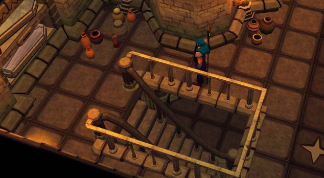 6. Pak Caitlin's Staff, doe deze aan en zet Wind Rush - of een andere Air spell - aan, en ga verder naar beneden.